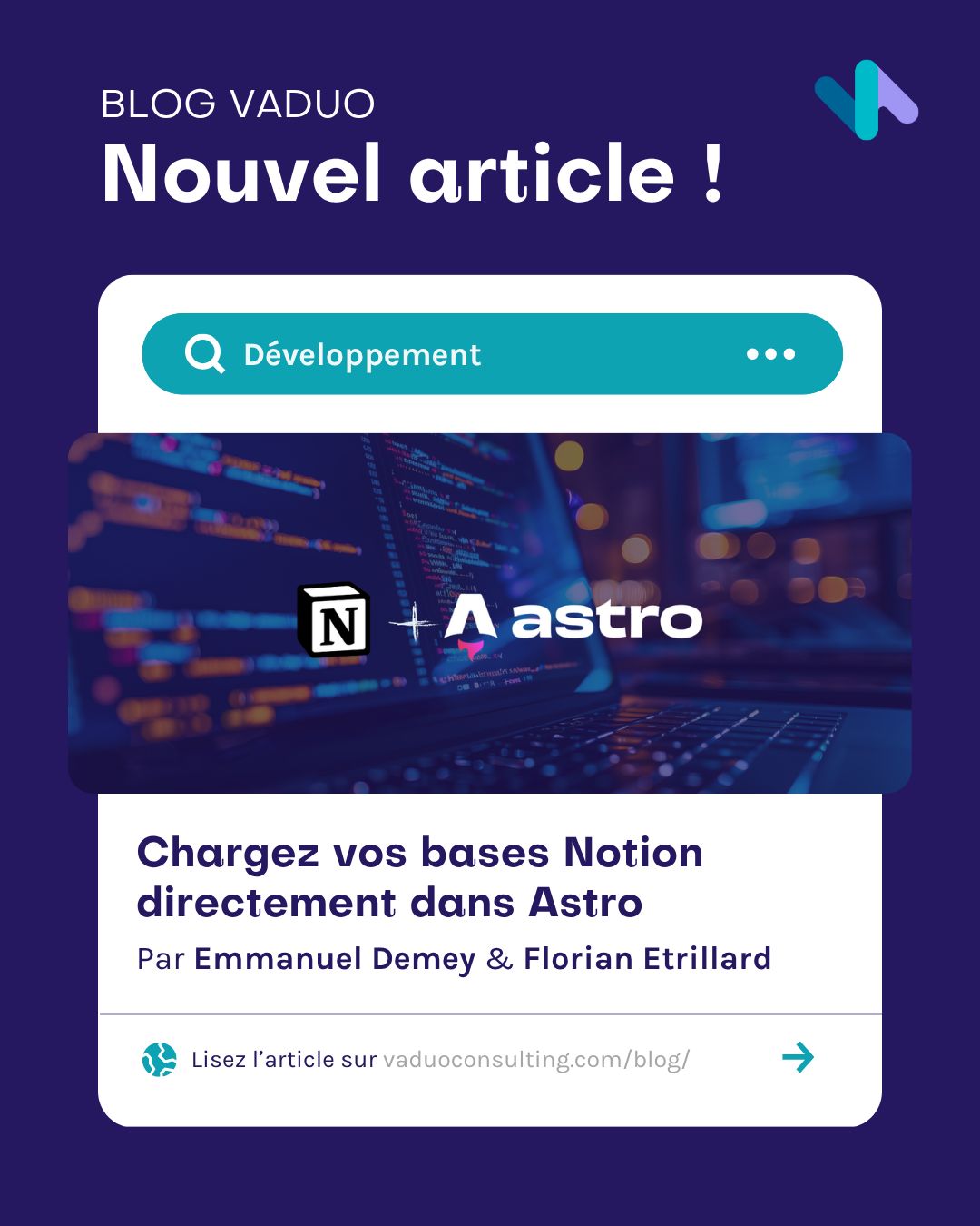 Gérer ses contenus Notion dans Astro, c’est souvent un vrai casse-tête : entre typage flou et intégrations complexes, rien n’est vraiment simple. Il y a deux semaines, Emmanuel Demey et Florian Etrillard présentaient \@duocrafters/notion-database-zod, une librairie open-source qui transforme le schéma d’une base Notion en schéma Zod strict. Aujourd’hui, ils passent à l’étape suivante. Avec \@duocrafters/notion-database-astro, ils rendent possible le chargement direct d’une base Notion dans les Content Collections d’Astro. La base Notion se charge, se valide et se rend automatiquement, avec typage fort et validation intégrée. 📖 Dans cet article, Emmanuel détaille le fonctionnement du loader et la manière dont il connecte directement Notion à Astro. 👉 À lire sur notre blog : <a href="https://lnkd.in/eucR5Ucf" target="_blank">https://lnkd.in/eucR5Ucf</a> Bravo à Emmanuel et Florian pour cette suite logique à leur travail open-source 💙
